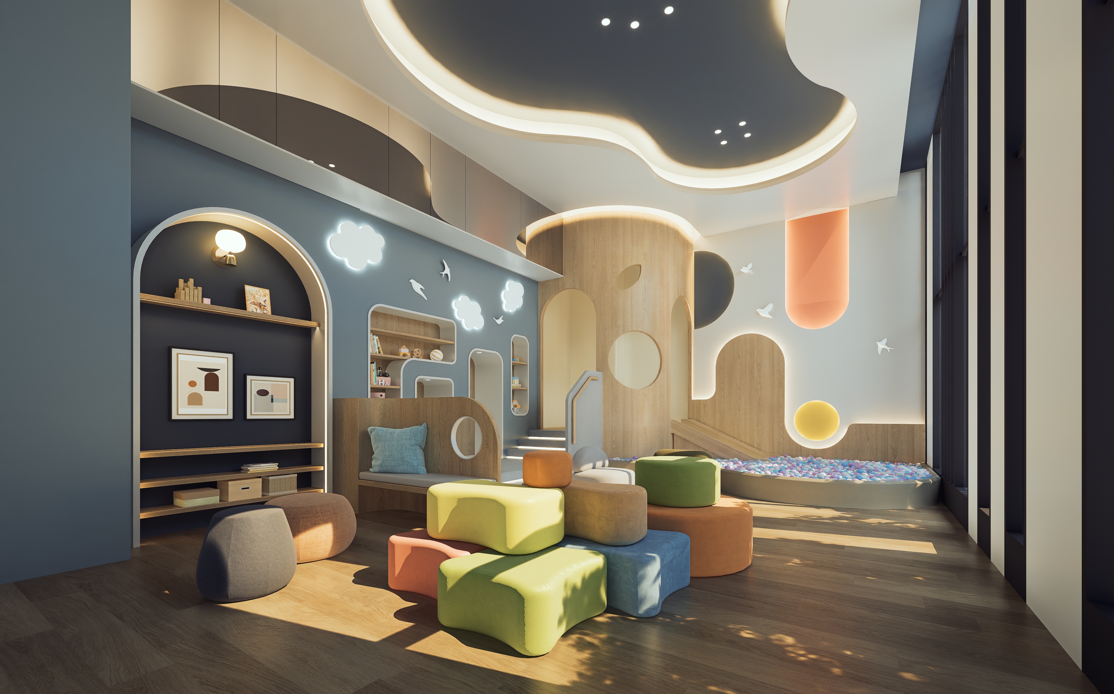 大型樂高區、山洞爬行區、球池溜滑梯…